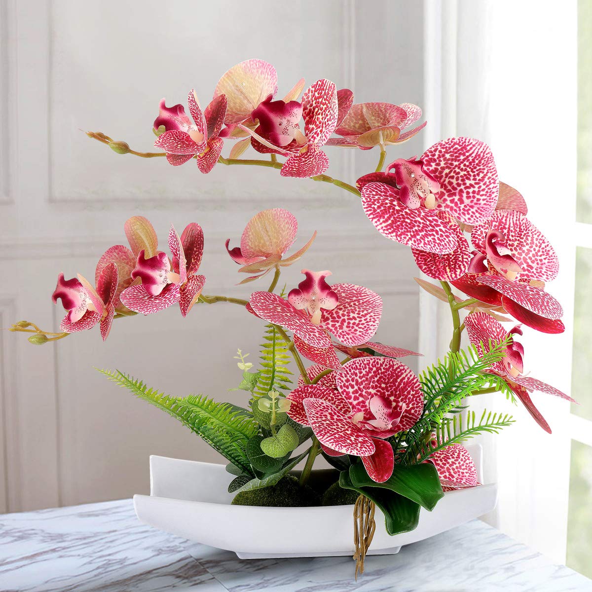 Amazon Com Yobansa Orchid Bonsai Artificial Flowers With Imitation Porcelain Flower Pots Phalaenopsis Fake Flowers Arrangements For Home Decoration Deep Pink Home Kitchen