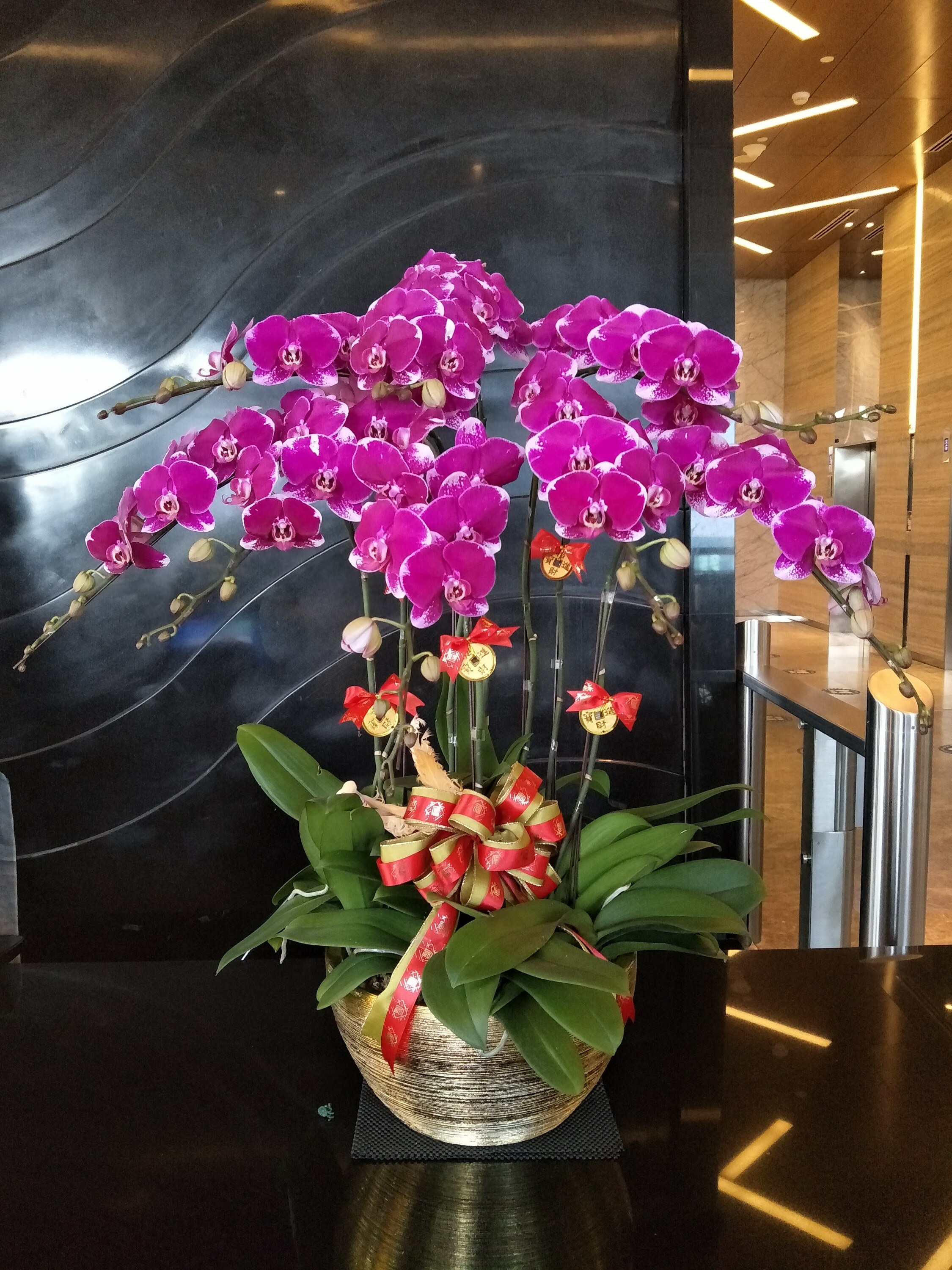 Gubahan orkid pasu besar. Pasu bunga hiasan siap gubah sudut sho malaysia.